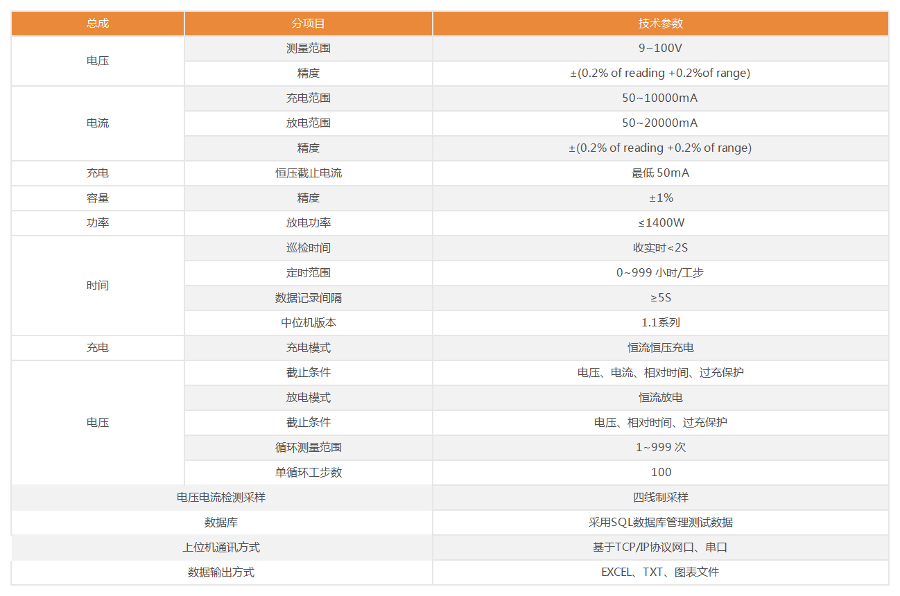 1)充放電功能:具有恒流恒壓充電功能、恒流放電功能,對電池充放電,記錄電池容量
