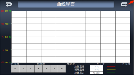 1、進入主界面后點擊“曲線界面”觸點如圖c所示,即可進入圖d曲線界面: