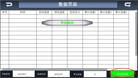 3、點擊右下角綠色“導出到U盤”觸點,直到出現如圖g的提示語“導出成功”,即完成數據的導出。然后將U盤等存儲設備放入到電腦設備上,即可獲取U盤中的數據,進行科研分析。