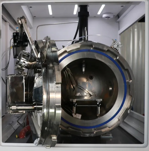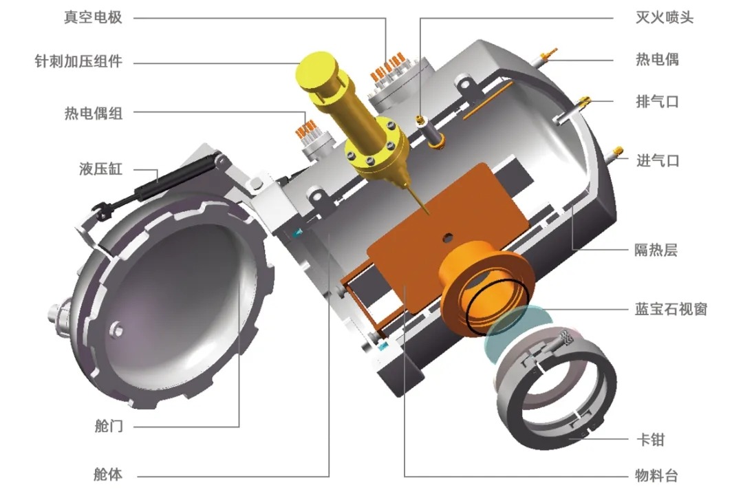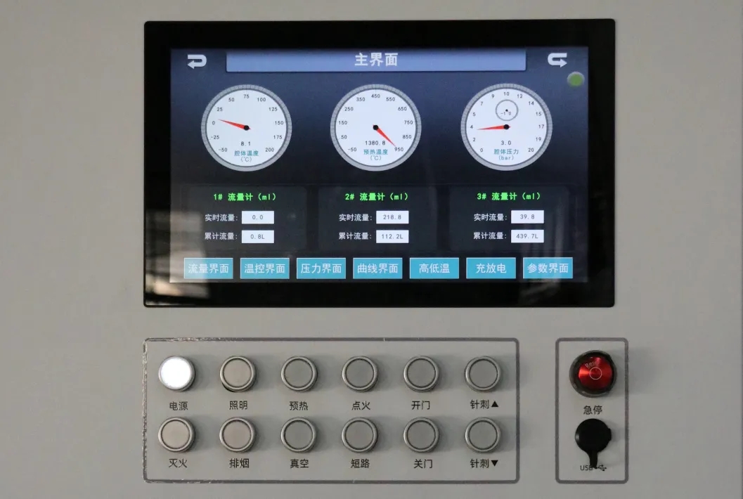 電池綜合性能實驗艙可實現多種環境要素(溫度、壓力、氣氛)耦合,對電池進行多類測試(針刺、擠壓、過充、過放、短路、溫度循環、點火、滅火)用于單體電池及小型電池模組的綜合性能測試(熱性能、電性能、安全性、可靠性)。